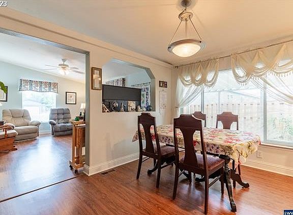 Charming 3 bed, 2 bath manufactured home in a desirable neighborhood! This lovely property features an open concept layout, perfect for modern living. The spacious kitchen flows seamlessly into the living area, creating an inviting atmosphere. With plenty of parking space available, convenience is at your doorstep. The fenced back yard provides privacy and a nice spot for outdoor activities. Laminate flooring throughout adds a touch of elegance to this beautiful home. Don't miss this fantastic opportunity!