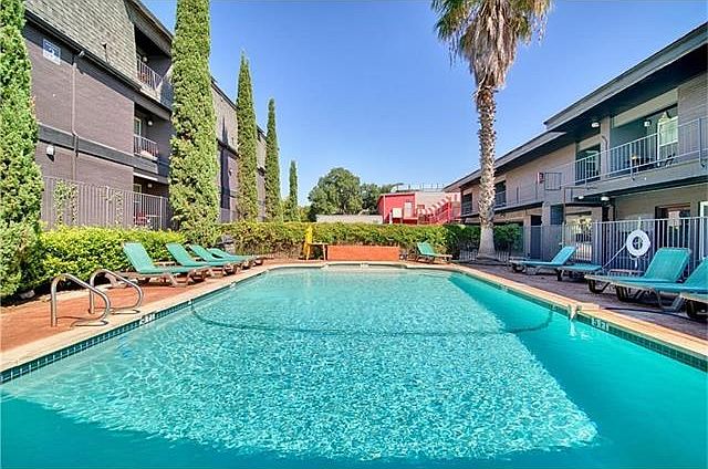 Updated condo in the heart of SOCO! Walk to grocery stores, boutiques, trailer food, restaurants, clubs, coffee shops. Remodeled w/wood floors, granite counters, under mount sink, travertine-tiled modern bathroom. Hip, urban community w/frequented pool, weight & fitness center, & courtyard w/gazebo/grill. Courtyard covered by large shade trees. Euro washer/dryer in unit, FREE on-site laundry facilities. FREE GOOGLE FIBER!