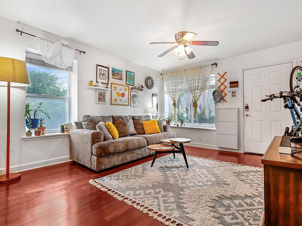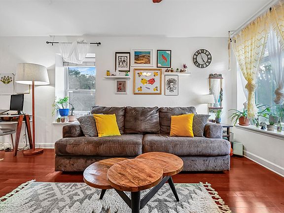 Tucked away in a tranquil corner of a charming South Congress condo community, this beautifully situated 1 bed, 1 bath, 650 sq ft corner unit offers the best of both worlds, walkable to all the action yet set far back from the street for peace and quiet. Just minutes from downtown Austin, Zilker Park, the hike-and-bike trail at Lady Bird Lake, and surrounded by neighborhood gems like the Blunn Creek Greenbelt and Big Stacy Park, this location is unbeatable for both convenience and nature access. Enjoy easy strolls to the shops, restaurants like June's and Meteor, and vibrant culture along SoCo and South 1st, (right around the corner from live music at CBoys), plus the brand-new HEB nearby. Commuting by bike? You’re perfectly positioned with quick and scenic routes into the city core. Inside, you’ll find a spacious open living and dining area with large windows and deep sills perfect for your favorite plants. The bedroom features generous closet space, and the kitchen offers great flow for both everyday living and entertaining. This west-facing unit captures golden-hour light beautifully—you can enjoy stunning sunsets from your front porch or living room. Additional highlights include reserved covered parking right outside your door, a peaceful courtyard shaded by mature live oaks, a work out center, a large pool and an extra side window thanks to its corner-unit placement. Don’t miss this rare combination of walkability, serenity, and classic Austin charm—all in one of the city’s most iconic neighborhoods.