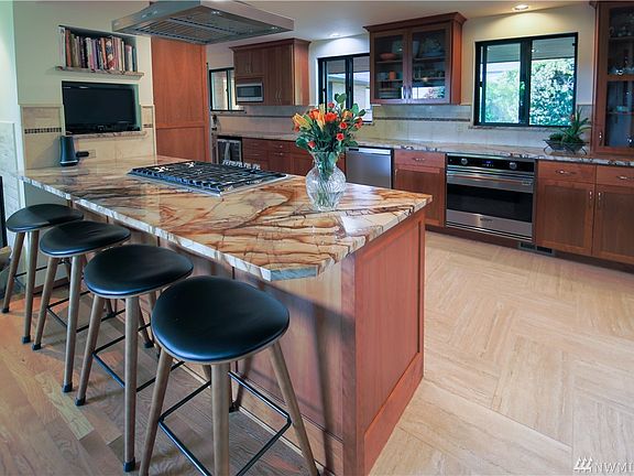 Beautiful turn-key Mid-Century Modern home with peak-a-boo view of Puget Sound is perfect for anyone looking for a serene getaway. This home incorporates high-end Viking kitchen appliances, attached finished garage, electric car ready, bright living space, gated parking (RV), and wonderful outdoor entertainment areas pepper this home. This home is 30 minutes from downtown, 15 minutes from West Seattle, and 10 minutes from the delightful town of Burien.