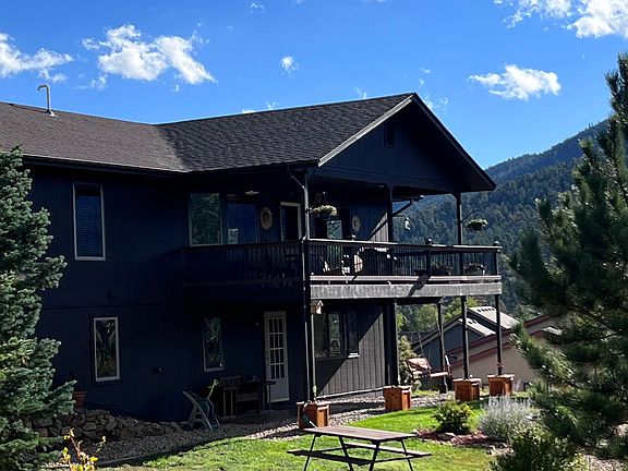 Big views from this home bordering open space overlooking Scott Ponds, nature area and bike trail. Spectacular views of Twin Sisters, Meeker Peak, Crags, and surrounding mountains. Awesome covered deck off of large open great room. Gas fireplace, vaulted wood ceilings, granite kitchen with breakfast bar, and dining area. Hickory flooring throughout main floor. Primary bedroom with ensuite bath, second bedroom, office/den, second bath, laundry room all on main floor. Walkout lower level with huge family room and lots of windows, views, kitchenette, bedroom, bath, storage area and man cave/exercise room. Mother in law possibilities with private entrance. Step out the lower level to landscaped backyard and patio area. Massive oversized 3 car garage is finished and boasts big window and more views. New high energy efficient gas furnace. Southern exposure. Both driveways allow easy access. Corner lot bordering open space. Underground utilities, gas, broadband and city paved/plowed streets. Close access to trail system for walks and bike rides. Convenient to town. Location is everything! Seller is licensed real estate broker.