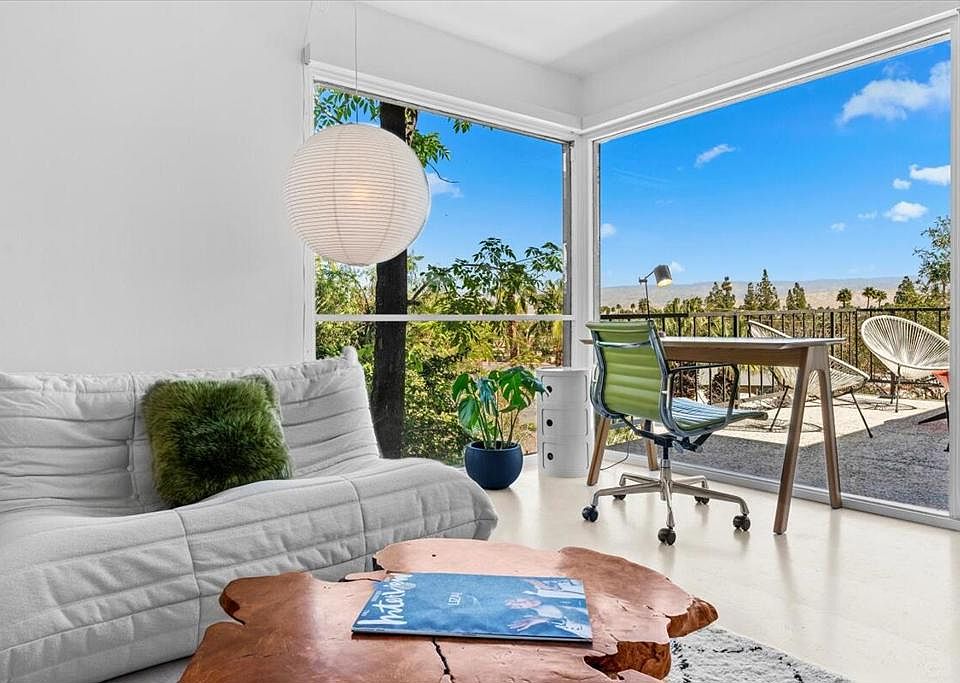 Welcome to the exclusive hillside enclave of Rimcrest, a stunning retreat where mid-century modern charm meets breathtaking panoramic views above Palm Springs. Built in 1967 and designed by Leroy Rose & Harold Carlson this rare freestanding detached condo offers the privacy of a single-family home with the ease of resort-style living. Spanning 1,600 square feet, this beautifully remodeled 2-bedroom, 2-bathroom residence also features a versatile flex space perfect for a home office, den, or bedroom for additional guests, easily made private with original refurbished shoji screens. Stylish updates include new eco-friendly cork flooring, designer-tiled bathrooms, and a sleek galley kitchen with new custom cabinetry and lighting. Step onto your expansive patio, an entertainer's dream, where you can soak in the mesmerizing desert landscape. And when it's time to unwind, a sparkling community pool and spa are just steps away.Furnishings available outside of escrow. Don't miss this rare opportunity to own a slice of Palm Springs paradise!