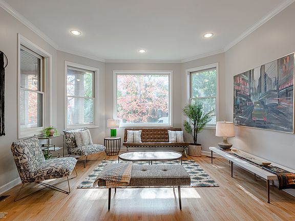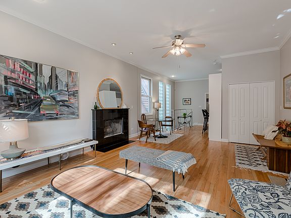 This Wicker Park 3 bed, 3 bath Duplex Down is at the intersection of where urban cool meets relaxed neighborhood vibes. Steps to Six-Corners, but situated on a quiet tree lined one way street, this open concept unit has high ceilings and large south-facing windows that flood the home with light. The main floor has a cozy fireplace, a great dining area, full bathroom, and an additional bedroom that would also be perfect for a home office. Kitchen features 42" white cabinets and granite countertops, plus a breakfast bar. Primary bedroom is massive with amazing closet space, bathroom with double vanity and separate tub/shower. 2nd bedroom downstairs is also a generous size with an attached bathroom. Entire unit has been freshly painted, hardwood floors are newly refinished, and brand new lower level carpet has recently been installed- the only thing left to do is move right in! Only a half block to Damen Blue Line train, restaurants, shopping, and the park. Garage parking space is included and plenty of outdoor space in the shared back yard.