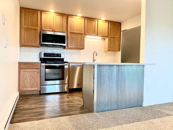 The building backs up to a large open space that is your view in this north facing unit. The unit is also on the top floor, making it the most private apartment in the building! Furnishings include plush carpet, wood flooring, stainless steel appliances, plenty of storage, full bathtub, and high quality materials. Apartment comes with a free assigned parking space!