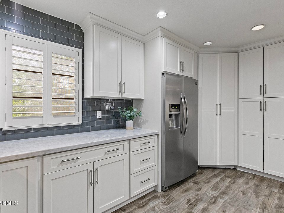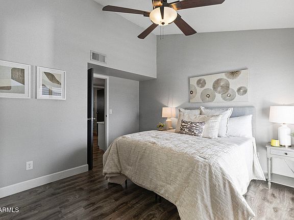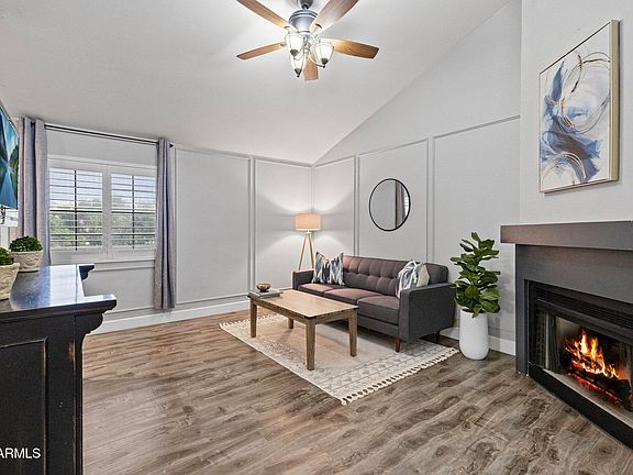 Welcome to this stunning, completely renovated condo just minutes from the 101 and I-17 where every detail has been thoughtfully updated from top to bottom. Professional interior design touches elevate the space, creating a modern, cohesive look throughout. The kitchen shines with upgraded cabinetry and sleek marble countertops, perfect for both everyday living and entertaining. Built-in closet systems provide exceptional organization and maximize storage. Enjoy the convenience of a private one-car garage and the added value of all TVs conveying with the home. For peace of mind and energy efficiency, AC was replaced in 2023. Every room reflects quality craftsmanship and thoughtful upgrades. This truly turn-key condo offers style, comfort, and exceptional value.