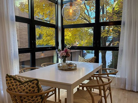 Welcome to Willow Court, one of Bucktown's most sought-after townhome communities - truly a unicorn in the city. Tucked just off Damen Avenue, this enclave of 56 homes surrounds a charming brick-paved courtyard that feels like a neighborhood within the neighborhood. This light-filled home has been renovated top to bottom - new kitchen, baths, roof, and Trex decking - all with thoughtful design and livability in mind. The main level features an open-concept kitchen, dining, and family room, with laundry conveniently relocated here. Upstairs are two en suite bedrooms with chic, modern baths, while the top floor office opens to a private roof deck with skyline views. The entry level includes a flex bedroom or den, powder room, and access to the attached garage-plus an additional parking space. The location is the definition of convenience and connection: walk to Bucktown's best restaurants, boutiques, and the 606 Trail, with two Michelin-starred restaurants just minutes away. Quick access to the Blue Line, expressway, and nearby Wicker Park, Lincoln Park, and Logan Square makes this one of the best spots in the city to call home.