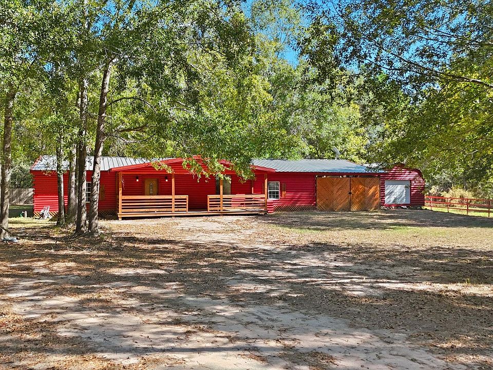 Discover true rustic charm and peaceful country living! Welcome to this spacious log cabin tucked on a quiet cul-de-sac in one of the area’s most desirable rural communities. Set on a fully fenced 2-acre subdivision lot, this home features an inviting open floor plan, natural wood finishes, 3 beds, 2 baths, a 3-year-old metal roof, and 6-ton mini-split cooling units for comfort year-round. Horses are permitted, and the property includes a large workshop, cozy front porch, carport, and covered back patio with plenty of extra room to roam. Enjoy the 10-acre creekside park, fishing from the pier, and three additional community parks—Creek Park and Big Buck Park just half a block away. With peaceful surroundings, mature trees, and amenities maintained by a friendly HOA, this property is perfect for full-time living, a weekend retreat, or a hunting lodge—offering privacy, charm, and true Texas country living at its best.