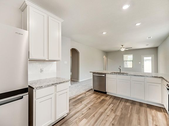 Excellent open floor plan house ready to lease. This single-story, three-bedroom, two-bath home is bursting with character. The dining room located at the front of the home is the perfect space for family meals. The kitchen is open to the family room, creating the ideal entertainment area. The master suite is the perfect place to retreat to, with an en-suite bathroom with a large enclosed shower and a walk-in closet. Another highly coveted feature of this home is the covered patio. All upgrades come included in this home such as granite countertops, energy-efficient kitchen appliances, Refrigirator is included, Wi-Fi-enabled garage door opener and more. Minutes to major high ways , shopping and dining. A Must See