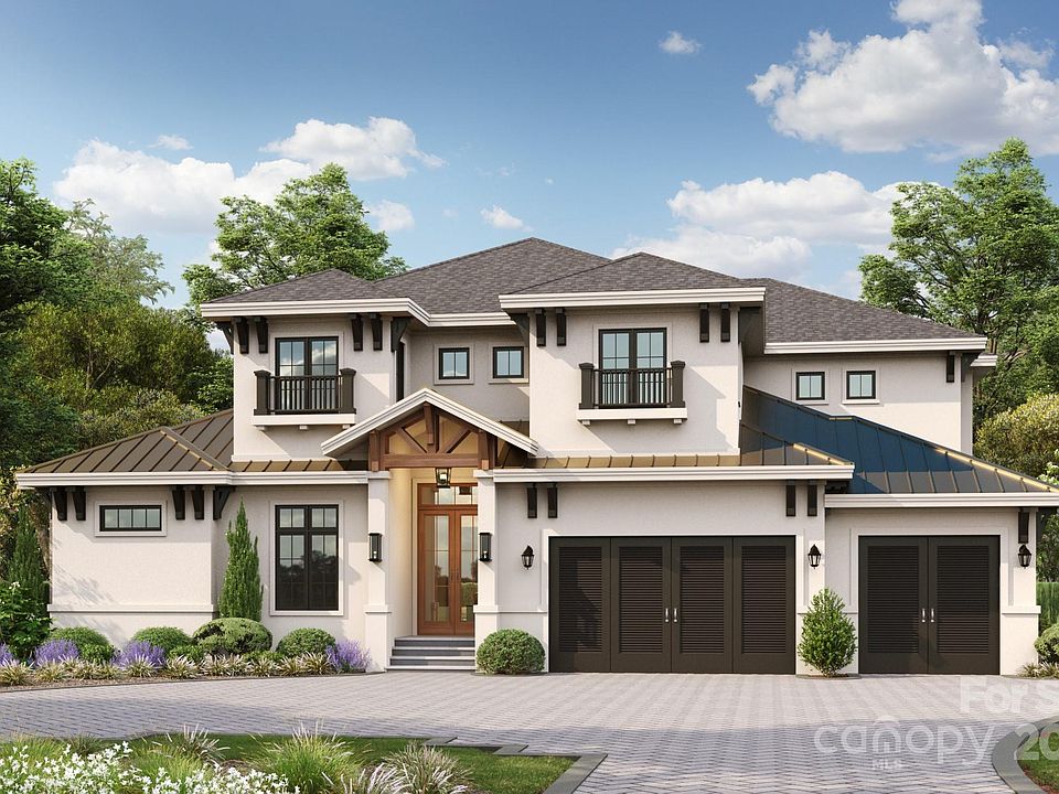 Modern sophistication meets timeless West Indies elegance in this custom new-construction masterpiece by Lagniappe Homes. Ideally located in Cornelius with lake access and positioned directly across the street from Lake Norman, this 4,700+ sq. ft. residence offers beautiful water views and a rare opportunity to own new construction in one of the most sought after areas. From the moment you arrive, the home captivates with extraordinary curb appeal—featuring a full stucco exterior, bronze aluminum-clad windows, custom wood garage doors, and a stained mahogany entry door that together create a warm, architectural statement both refined and welcoming.