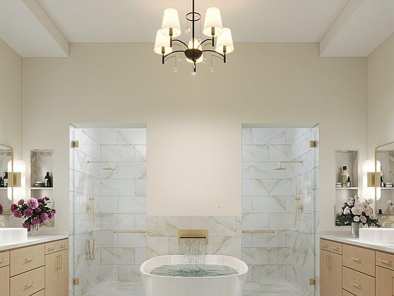 The main-level primary suite features dual walk-in closets and a spa-inspired bath with soaking tub and oversized shower. Upstairs includes three ensuite bedrooms, a spacious loft with wet bar, and a second covered lanai. Outdoor living completes this exceptional property with a resort-style heated pool and spa featuring waterfall and fire elements, and custom putting green. Every detail—from dual laundry rooms and two tankless water heaters to whole-home audio prewire—has been carefully designed for exceptional comfort, performance, and modern luxury.