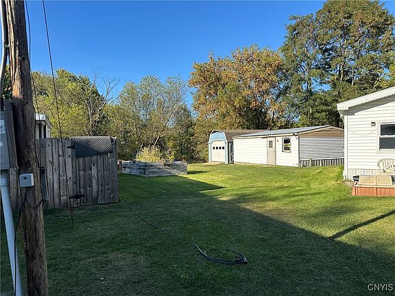 Cute village home with three spacious bedroom located on a quiet side street. This property includes 3+ acres with the Chaumont River running through it and is in walking distance of the school. The treed lot has three outbuildings with electricity and insulation in two of those, offering plenty of storage. The large fenced in back yard adds privacy. The home has an enclosed porch allowing use in the summer and winter.