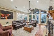 Tucked away on wooded acreage at the end of a quiet cul-de-sac, this stunning ranch-style estate offers breathtaking greenbelt views and unmatched privacy in a gated community. Step inside to an inviting open-concept living and dining area, where vaulted ceilings, crown molding, and expansive windows create a bright and airy ambiance. ...