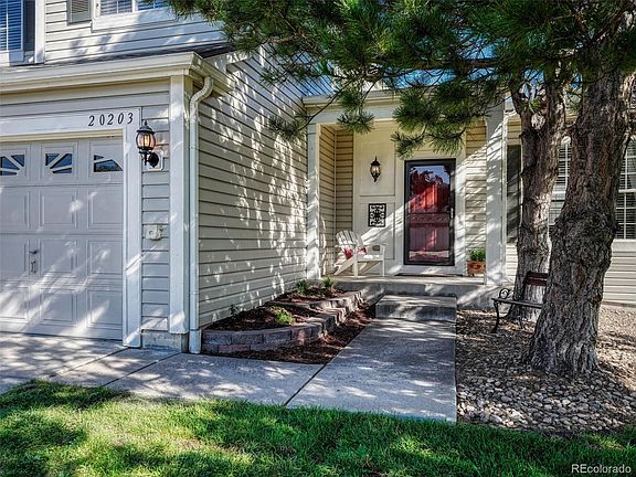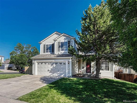 This beautiful 3br/3ba, 3-level home in a cul-de-sac in Parker’s Hidden River community offers a fenced backyard, gorgeous kitchen and plenty of storage space. A welcoming covered front porch opens to a great room and open floor plan on the main floor. Beautiful, large windows let in plenty of natural light and the neutral colors throughout the home offers the perfect backdrop for decor and accent colors. Hardwood flooring flows throughout the spacious living, dining and kitchen areas. The gas fireplace with stacked stone and a wood mantle is a beautiful focal point with space for a big screen. Entertaining and keeping an eye on backyard playtime is easy from the kitchen and living room or large deck and patio. Gorgeous quartz counters, stylish light fixtures and white cabinets complement the stainless steel appliances and undermount sink. The main floor laundry room and kitchen pantry have ample storage space, and the main floor half bath is near the 2 car garage. Upstairs, a spacious primary bedroom suite includes a walk-in closet, vaulted ceilings, large windows and a ceiling fan. The rustic wood barn door opens to the luxurious bathroom showcasing a subway tiled oversized shower with a hand-held shower head and rich, wood towel cubby. The granite-topped double vanity coordinates nicely with the rustic wood-look tile flooring. Two additional bedrooms are located on the upper floor with a full bathroom. In the basement, a large flex room has new carpet and is great as a fourth bedroom, gym, office area, or family room. Plenty of storage space, plus a crawl space, allows for seasonal item storage. The backyard has nice deck and patio areas, a large side yard for pets, garden storage/gardening and a new lush lawn. Home is walking distance to Iron Horse Elementary School; Hidden River neighborhood has access to trails including Tallman Gulch and 3 parks within .25 mile.