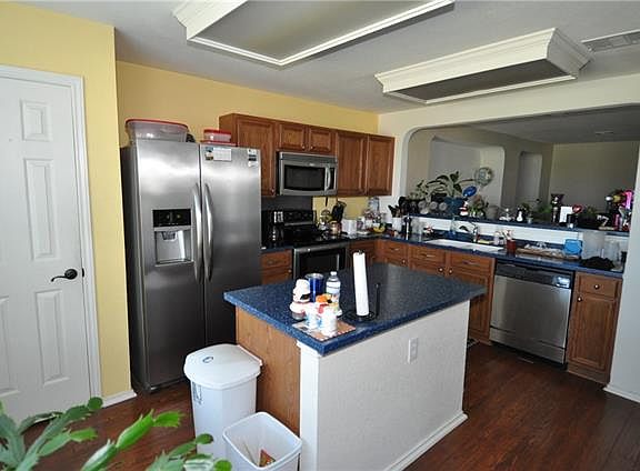 Beautiful 1-Story, Large Family Room That Is Open To Kitchen, Hardwood Laminate Floors In Kitchen, Island In Kitchen! Covered Patio In Backyard With Steps Down to Large Backyard, Backs to The Greenbelt. Double Vanity, Walk-In Closet and Garden Tub In Master Bedroom, Open Porch, Attached Garage. Dishwasher, Disposal, Microwave Oven, and Range.