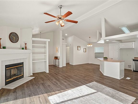 Welcome to this beautifully updated 2-bedroom, 2-bathroom home offering 1,311 square feet of comfortable living space. Enjoy fresh interior and exterior paint, brand-new luxury vinyl plank flooring, and plush new carpet in the bedrooms. The inviting living room features a cozy fireplace—perfect for relaxing evenings. The bright, functional kitchen includes white cabinetry and a central island with refinished countertops—ideal for both everyday use and entertaining. Ceiling fans are installed throughout the home for year-round comfort. Step outside to a spacious backyard oasis featuring a large patio, beautiful planters, a grass area, and an incredible mountain view—perfect for outdoor dining, relaxing, or play. Additional highlights include a direct-access 2-car garage and a layout designed for both style and convenience. This move-in-ready home combines comfort, charm, and scenic surroundings—don’t miss your chance to make it yours! This home is located in Canyon View Estates and has a current monthly land lease of $1,886.22 which includes community amenities such as a 24-hour gate, usage of 2 pools and spa, 2 sport courts, and 2 play areas. Canyon View also offers a community clubhouse and RV storage. The home is located near parks, bike & walking paths, shopping & entertainment, and schools, with easy freeway and Metro-link access. Home is a must-see! Please submit pre-approval along with proof of funds with offer. Buyer to verify all before close of escrow.