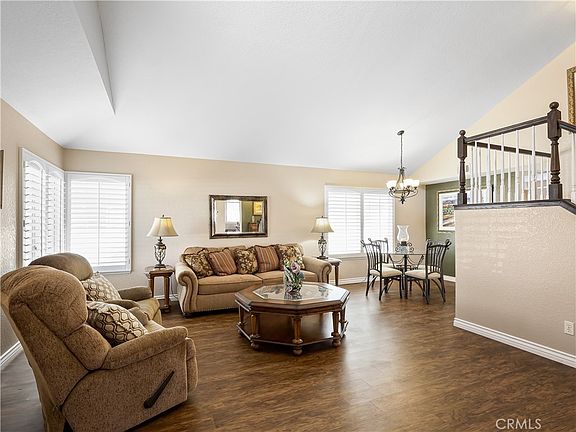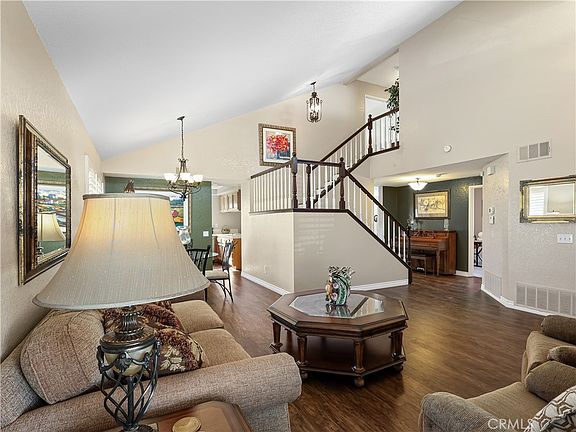 Look no further! This 1991-built, two-story home offers an excellent location in the sought-after Orangecrest neighborhood, with a grand, open-concept floor plan featuring 4 bedrooms, 3 full bathrooms, a convenient downstairs bedroom and ¾ bath, a 3-car garage with direct access, and a beautiful backyard. This home shows pride of ownership, featuring striking curb appeal with a lush front yard with a mature tree, spacious driveway, tile roof, freshly painted front door with a charming half-circle window above, and a stone feature wall at the entrance, all enhancing its architectural elegance. Upon entry, enjoy vaulted ceilings and a spacious formal living room with large street-facing windows, adjacent to a dining area next to the kitchen. Paradise to a cook, the impressive kitchen offers ample cabinet and counter space, a large window above the sink overlooking the backyard, a convenient desk area next to the large pantry, and a peninsula with a breakfast bar opening to the family room with a fireplace and backyard-facing windows. Adjacent is a versatile room with four windows and a slider to the backyard, currently used as a second dining area, but ideal as a sunroom, playroom, or extra living space. With a bedroom and ¾ bathroom on the main level, this well-designed floor plan offers flexibility for guests, a home office, or multi-generational living. A staircase with a coat closet and large storage area leads to the second floor, including the primary suite, two more bedrooms, and a full hallway bathroom. The primary suite, with a double-door entry, offers ample space for a king-sized bed and a sitting area overlooking the backyard. The ensuite bathroom features a double sink vanity, separate soaking tub and shower, and private water closet, creating a spa-like retreat. The landscaped backyard has lush grass for play and relaxation, mature trees offering shade and privacy, a block wall at the rear, and vinyl fencing on the sides for security and style—perfect for year-round outdoor moments. The 3-car garage has a concrete slab, roll-up doors, laundry area and built-in storage. Nearby amenities include the Orange Terrace Community Park and Library, award-winning schools, shopping centers, restaurants, and entertainment. Easy access to the 215, 60 and 91 freeways. No HOA, No Mello Roos. Whether you're looking for a quiet neighborhood to settle in or a vibrant community with plenty of recreational options, Orangecrest is an exceptional place to call home.