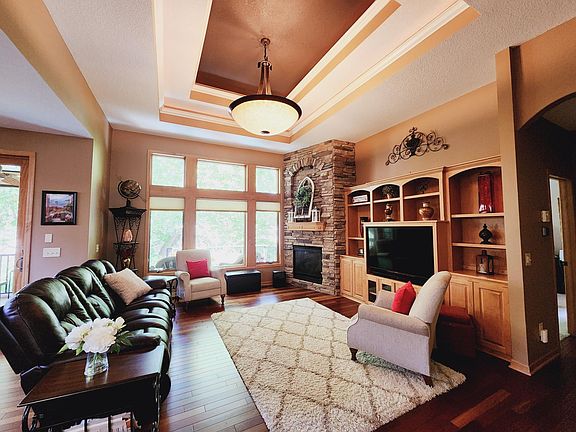 Don't miss this outstsnding 3BR/3BA rambler - a TJB built former model in a wonderful association maintained Blaine neighborhood! Many thoughtful design touches & upgrades throughout. LR features a floor to ceiling gas fireplace w/natural stone surround, tray ceilings w/LED surround lighting, newly re-finished hardwood floors, large windows & gorgeous finishes. Stunning Kitchen with granite countertops, walk-in pantry, breakfast bar, beautiful detailing in the cabinetry and even a hidden spice rack! Dining room walks out to a 3-season porch & maintenance-free deck overlooking a yard of mature trees & tasteful landscaping. Perfect space to entertain! The main bedroom has tray ceilings, a large bath w/jacuzzi tub, separate shower & walk-in closet. The home's lower level has tons of space featuring a family room, amusement area, 3rd bedroom & a large bonus room w/ built-in cabinetry & fridge - great for a playroom or hobby room! Garage offers 12ft ceilings and two storage areas,