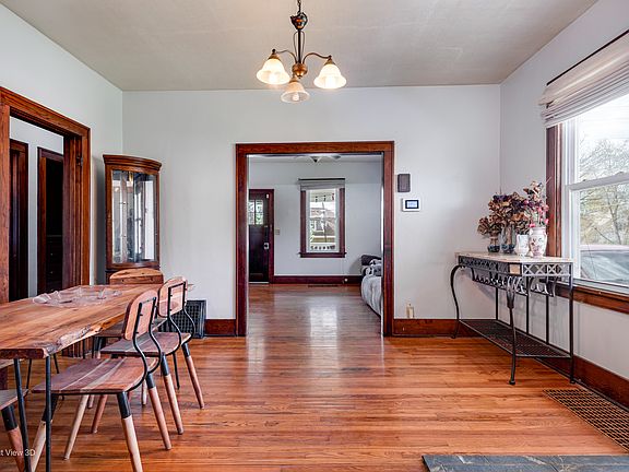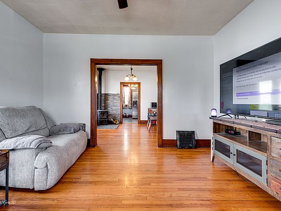 ***MOVE INTO THIS ADORABLE 2 BEDROOM HOME WITH A 1 YEAR HOME WARRANTY INCLUDED WITH A FULL PRICED OFFER!*** ROOF, SIDING AND WINDOWS ESTIMATED TO BE INSTALL IN 2009. WATER HEATER 2019, NEW FLOORING IN KITCHEN AND COMPLETE BATHROOM REMODEL IN THE LAST 2 YEARS ALONG WITH REFINISHED HARDWOOD FLOORS IN THE LIVING ROOM, DINING ROOM AND BOTH BEDROOMS, NEW ENTRY DOOR AT THE BACK OF THE HOME WITH A PET DOOR, AND A BEAUTIFUL NEW FRONT PORCH TO ENJOY SITTING OUT ON TO READ A BOOK AND HAVE A NICE COLD BEVERAGE AT DURING WARMER DAYS. FULL UNFINISHED BASEMENT WITH PLENTY OF STORAGE AND AN UNFISHED ATTIC THAT IS BEING USED FOR STORAGE, COULD BE FINISHED ADDING ADDITIONAL SQUARE FEET TO THE HOME. THE KITCHEN IS A BIT OF OLD MEETS NEW WITH ORIGINAL BUILD IN BUFFET CABINETS AND A NEW MODERN SINK WITH NEW CABINETS. THERE IS AN ORIGINAL BUILT IN IN THE HALLWAY LINEN CUBBY. THE DINING ROOM COMES WITH A NEW WOOD BURNING STOVE THAT WILL KEEP YOU COMFY AND WARM DURING THE COLDER MONTHS. ALL APPLIANCE WILL STAY. THE STOVE AND REFRIGERATOR ARE ABOUT 2 TO 3 YEARS OLD. THE ROMAN SHADES WILL STAY BUT NOT CURTAINS.