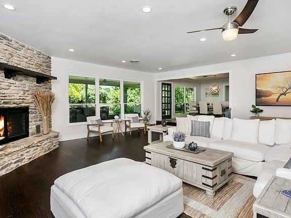 Timeless Midcentury Design on Over An Acre In Town! This beautifully renovated midcentury modern estate in coveted Carriage Hills (also a permitted STR) pairs architectural integrity with understated luxury. Set on just over an acre, the home spans over 5,200 square feet with six bedrooms and six full baths that includes an attached suite with a separate entrance, full bath, kitchenette, and laundry creating possibilities for a gym, studio, or bonus guest quarters. Guests are welcomed beneath a striking porte-cochre and enter into a thoughtfully designed interior where clean lines and classic materials define the space. Two distinct living areas offer both comfort and flexibility. The main living area is anchored by a floor-to-ceiling stone fireplace, windows that overlook the outdoor living space and is open to the kitchen and dining. The second living area is a wonderful for more intimate conversations or extends flexibility for a formal dining area or 2nd home office. The kitchen features quartz countertops, custom cabinetry, and an oversized island perfect for entertaining. Stainless steel appliances include: built-in Frigidaire Professional refrigerator, 2 KitchenAid dishwashers and ice machine, Thermador built-in microwave, oven and warming drawer, Wolfe Induction cooktop and a Frigidaire Gallery wine fridge. Just off the kitchen is a walk-in pantry with a prep island and a dedicated office that provide elevated convenience. The primary suite is a sanctuary unto itself, featuring two full baths and a custom dressing area/closet. The backyard, large enough to add a pool, is framed by mature trees. A large covered back patio invites relaxed gatherings, while the custom putting green adds a playful touch. Additional features include a four-car garage and a licensed short-term rental permit for up to 12 guests. This is a rare chance to own an estate-sized home on acreage—right in town. Perfect as a primary residence or a premium short-term rental, 2021 Briarwood combines upscale living with flexible income potential—all within city limits.