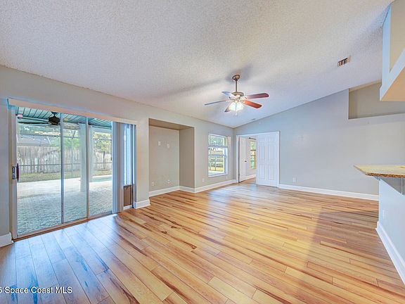 Welcome to this beautiful 3-bedroom, 2-bath pool home nestled in a well-established neighborhood. Additionally, this home has a VA assumable loan of 2.75% for those who qualify. This home was designed with comfort and versatility in mind, the open floor plan offers both formal and informal living areas, a formal dining space, and a convenient breakfast bar. The flexible layout allows for multiple uses to suit your lifestyle. Enjoy waterproof laminate flooring throughout the main living areas and a spacious master suite with an oversized walk-in closet. The kitchen features granite countertops and abundant cabinet space, that opens onto the family room. A large laundry room and 2-car garage add practicality and convenience. Step outside to a covered patio perfect for entertaining, overlooking a screened-in pool. The fully fenced backyard ensures privacy for family and pets. With a brand-new roof (2025) and a prime location near US 1, I-95, Melbourne Airport, Patrick Space Force Base, great shopping, and top-rated schools, this home offers the ideal Florida Lifestyle.