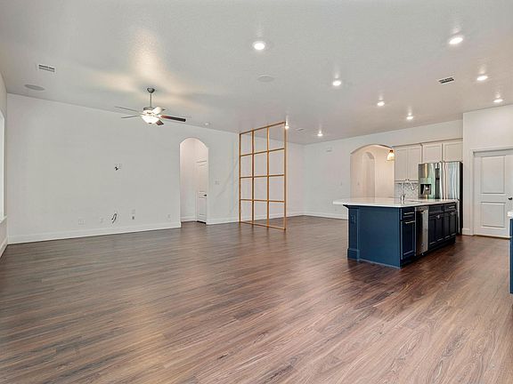 Stunning single-story 3-bedroom, 2-bath home in the highly desirable Vivace at Harmony community, featuring an open-concept layout that seamlessly integrates the kitchen, dining, and living areas, perfect for entertaining or everyday living. Enjoy elegant vinyl plank flooring throughout, a chef's kitchen with Quartz countertops, a large island, breakfast bar, and under-cabinet lighting. Experience immersive surround sound with four premium Klipsch CDT-5800-C II in-ceiling speakers professionally integrated into the living area. The primary suite offers a spa-like bath with double sinks, a soaking tub, and a walk-in closet, plus a convenient laundry room with cabinetry and sink. Relax in your private backyard oasis with a covered patio and NO BACK NEIGHBORS, backing to a peaceful greenbelt. Ideally located near shopping, dining, top-rated schools, and major highways, with resort-style amenities including pools, courts, trails, and parks, this home has it all and won't last long!