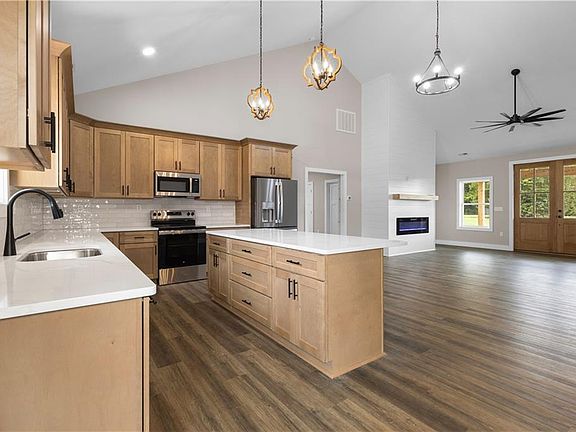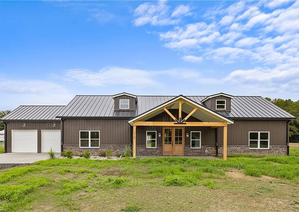 Move-in-Ready Barndominium, The Aspen Model on 0.80 acres in Surry County only 25 minutes to downtown Smithfield. Stunning Metal Siding and Roof, oversized garage, front and back Covered Porches. Covered Front Porch leads to the Open Great Room designed with 18+ ft vaulted ceiling for the perfect open Living, Dining and Kitchen space. Kitchen with Stainless Steel Appliances, granite counters, tile backsplash, and walk-in pantry. Large Primary with huge walk-in closet and Spa-like Bathroom with tiled shower, freestanding tub and dual vanity. Bedrooms 2, 3, 4 share a bathroom with rec/bonus space. Large laundry room, mudroom with lots of storage space and wash area lead to the garage. Best spot may just be the huge covered back porch with lovely nature views and access from the kitchen great room. Ask about Seller Incentives and make this Barndo yours!
