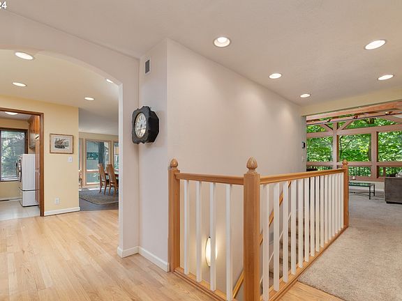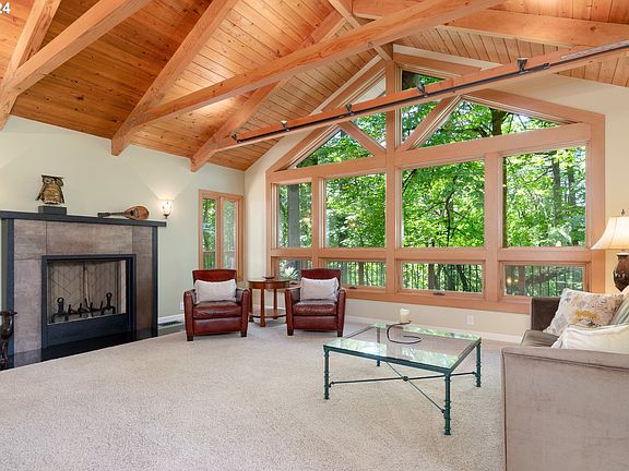 True craftsmanship abounds in this beautifully updated and immaculately maintained NW Contemporary on a 3/4 acre property in the SE Hills of Eugene! You'll love the incredible forested view from the vaulted living room w/ wood beams and wood burning fireplace. High end, custom-designed kitchen w/ honed granite counters, stainless appliances and cherry cabinetry w/ pullouts and soft-close doors opens to window-lined dining room and cozy sunroom w/ skylight. Rounding out the main level is the primary ensuite bedroom with walk in closet and fully remodeled bathroom featuring dual vanity and walk-in tile shower. The lower level offers multi-generational living opportunities with 2 more bedrooms, another full bathroom and a beautifully appointed family room featuring wetbar, custom cherry cabinetry, certified wood stove and slider leading to a private patio. Appreciate the outdoors and enjoy al-fresco dining on the sun-dappled deck or wander along the paths and in your own private forest retreat. Other features include Porte Cochere drive-thru carport and driveway, ample parking for RV or trailer, tons of storage, wood-framed Marvin windows, newer furnace and a/c, and so much more. Completely move-in ready with clean inspection on file. Perfect for the buyer who appreciates uncompromising quality!