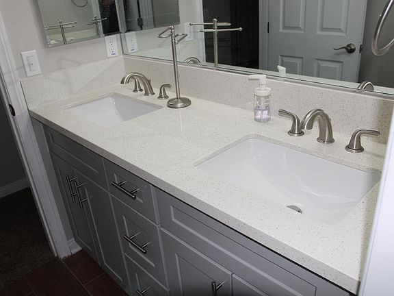 Section 8 welcome. Brand New built 2022!! 1 story with all the modern efficiencies. Modern kitchen with putty color shaker cabinets, Quartz countertops and stainless appliances: Stove, Microwave and Dishwasher. Kitchen overlooks the family room, dining room with the breakfast bar and its oversize countertops. Dark hardwood floors with custom upgraded carpet in the bedrooms. The bathrooms have matching cabinets, quartz vanity tops, dual sinks and custom lighting. High ceilings and loads of light thru out the house. Access the synthetic turf rear yard thru 2 sliders and enjoy the covered patio and separate storage shed. The rear yard has block walls, 2 car garage and custom colors to stand out in the neighborhood. The front yard features an attractive desert scape no maintenance lawn. Built in 2022, there are no worries about maintenance or those "old and dated" homes. Tenant pays water and trash (No gardener needed!) 1 year lease. No pets. No evictions.