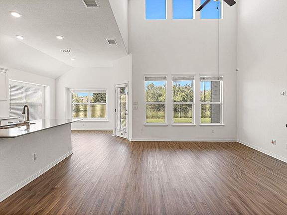 Versatile loftSoaring high ceilingsSleek appliancesCovered patioSpacious greenbelt lotModern kitchenPeaceful greenbelt