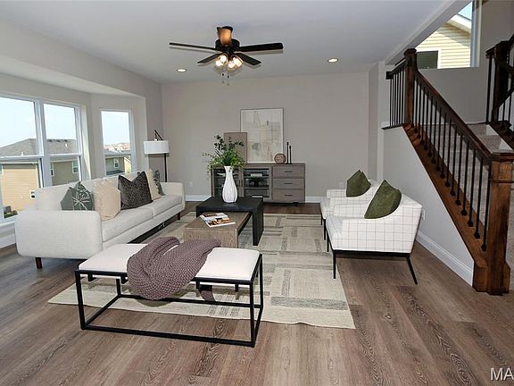 A 2025 new construction in popular Maryland Oaks Subdiv; 5 bdr, 4 bath, 2 story, near 3400 living space with a 16x11 composite deck & 26x22 patio; 9 ft ceiling main level & 9 ft ceiling walk-out lower lvl; LVP flooring throughout except bdr & w/I closets; Inviting entry foyer leads to an office/sitting rm & a formal dining room; Bay windows in great rm & breakfast rm; Open concept floor plan in the great room, breakfast room & the kitchen creating a great space for family time and entertainment. Open staircase to upper level features; Primary suite, 3 add’l bdr each has walk-in closets & a hall bath; Lower level features a family room, 5th bdr & a full bath plus amply storage space, with access to patio & yard; Zoned HVAC; Irrigation system; Be the lucky owner to enjoy this brand new home in a well established neighborhood close to all major highways, Westport, Lambert Airport, hospitals, restaurants and shopping;