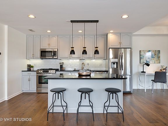 Magazine worthy, stylish updated 2 bedroom + bonus area for office nook, 2 bath corner unit is at the corner of SUNSHINE and SUNSHINE! Light and bright open floorplan boasts brand NEW hardwood floors throughout, all NEW SS appliances and W/D, all NEW designer master bath and 2nd bath, all NEW light fixtures, all NEW paint throughout... move-in ready! Newer water heater and furnace. 1 heated garage space is included in the price - a 2nd space next to it is available for $15,000. Elevator boutique building has a 6th floor common roof deck with a rare Chicago skyline view. So close to all things Logan Square! Scofflaw, Giant, Moonlighters, Parson's, Osteria Langhe, Palmer Park, the 606, Webster's Wine bar, farmer's market. Too many to list! Easy commute with bus and Blue line. Agent owned.