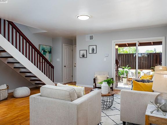 Light and bright townhome that is updated and move-in ready. Don't miss this great home that has a remodeled kitchen with beautiful quartz counters coupled with pristine white cabinets. Upstairs features two spacious bedroom with a newly renovated full bathroom. Enjoy the outdoor patio that is located direclty across the street from the popular Hillcrest Park. Keep cool this summer with the brand new air conditioner unit. This home features an assigned covered parking space and a storage closet in entry alcove. Excellent commute location just minutes to Highways and Bart. HOA amenities include water and garbage as well as access to the pool and clubhouse.