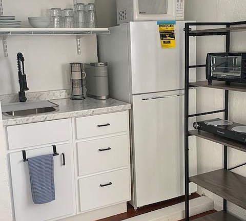 Quaint, fully furnished space separate and private, fully insulated for quiet; connected to the 100 year old main house. Less than 1.5 miles to two major hospitals and many quaint restaurants within walking distance. Private coded entrance with small deck and bistro set. One living room with kitchenette; other room is the bedroom includes queen sized bed with 4" memory foam topping. Also with mirrored closet and dresser. Both rooms have book cases and rattan baskets for more storage. Large, dual panes windows with insulation Levelor blinds throughout. Full length black-out curtains and sheers throughout for privacy. Complete with remote controlled air conditioning and heating. Includes cordless vacuum cleaner and a HEPA air filter. Single occupancy, no pets, but might consider one clean, non destructive cat for an extra $100.00 per month. Has a private coded entrance in a very safe neighborhood. Fully furnished, beautiful refinished hardwood floors, fully supplied kitchenette including plates, bowls, Keurig coffee maker, 2 plate quick heating infrared hot plate, toaster oven, convention microwave oven and very good size-fridge. Behind property is retirement home for nuns - quiet and lots of privacy in shared yard. Outdoor dining area along with BBQ and outdoor sink. Lots of natural light and nice cross breezes. All utilities included such as Wi-Fi and washer/dryer on site. . Private entrance with coded lock, small deck looking out on lush backyard, living room includes kitchenette, private bathroom with completely upgraded fixtures, bedroom with queen-sized bed, dresser and bookcases. Includes sturdy fold-able work station/dining room table, very comfortable loveseat, coffee table, workstation, widescreen TV with remote and includes a well Are foldable workstation that seats four if entertaining. Tall, medium sized Rubbermaid shed for more storage. Hot tub access available for extra monthly fee - closes at 9pm. Must see to appreciate. Monthly rent - all utilities included w/ onsite washer/dryer, air conditioning and heating, wide screen TV and Wi-Fi. Private deck and big, beautiful shared back yard. Prefer a 3 month renter or longer. Private coded entrance and motion detector lights. Landlord provides parking permit.