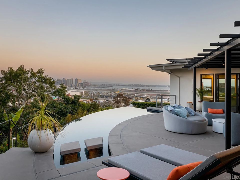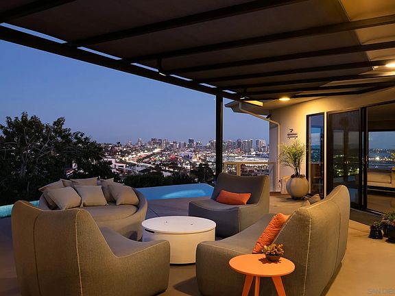 Prepare to be transported back in time to the glitz and glamor of the 1950s with the magnificent Mid Century Modern Lloyd Ruocco Masterpiece Circa 1959, meticulously updated to absolute perfection by the one and only Marc Tarasuck. Lloyd Ruocco, hailed as San Diego’s most influential modernist architect, created this architectural marvel that still stands tall today on an oversized 10,100 square foot lot with elegant hardwood floors that'll make you feel like you're walking on clouds. As you step inside, you'll be greeted by large scale dual-paned windows and doors that bathe the interior with natural light, making everything sparkle like diamonds in the sun. The dazzling lights throughout the property add a touch of sophistication, while the attached 2 car garage with contemporary glass panels is the perfect fusion of modern and classic design. While you're relaxing in one of the most breathtaking infinity pools, you can gaze out at Point Loma, where you can watch the planes land at the airport, views of San Diego Bay, Downtown San Diego, and all the way to Mexico, leaving you speechless. Living in the lap of luxury while taking in the stunning views from your very own home, this property is perfect for entertaining guests, relaxing in style, or simply soaking up the beauty of San Diego.