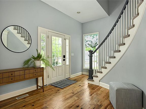 Main level has newly refinished Hickory WIDE PLANK flooring throughout. The big sunny living room opens to the kitchen w/ big island & peninsula with stools. Kitchen offers new gas cooktop, quartz counters, drawer microwave, wine fridge & double oven! Pantry closet & pantry cabinet w/ pull out shelves provide loads of storage.
