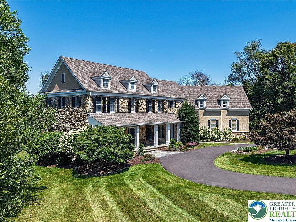 QUALITY MEETS STYLE in this fabulous custom stone colonial, prominently situated at the entrance to Saddle Ridge. Light-filled throughout the home offers both sophistication and ease. Rooms of lovely proportions flow effortlessly, with walls of windows overlooking the tree-lined 4 acres. From the welcoming front porch to the elegant covered back porch w/luxury flooring & woodwork, the property invites you to enjoy and entertain family and friends in a private setting surrounded by nature. There are three floors of living space, a fireplace on every level, 10' ceilings on 1st floor, hardwood floors on levels one and two, and a walk-up attic for storage or conversion. The main floor offers a two-story foyer, spacious formal dining, living room, and family room open to the fully equipped eat-in kitchen with butler's pantry. Take the back stairs to the 2nd floor with a primary suite featuring sitting room with FP, walk-in closets & a luxury bath w/heated floors. Bedrooms two and three share a Jack and Jill bath while bedroom four has its own private full bath. Convenient laundry room with cabinetry completes this level. The finished walk-out lower level has an additional 1400 sq ft, including the expansive family room with gym, billiards, and craft areas, full bath w/sauna & steam shower, and one bedroom. A 20KW generator will run the whole house while an oversized 3-car garage and workshop provide outstanding storage and hobby areas. Truly exceptional!
