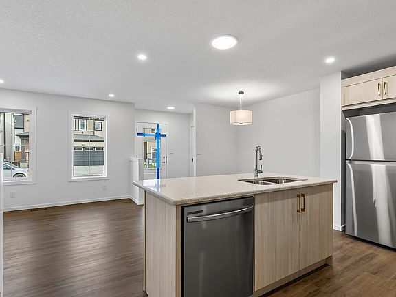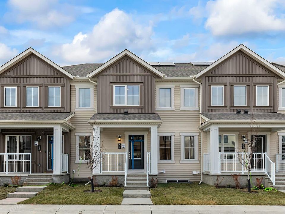 Brand new, never-lived-in townhouse with a double attached garage located in the fresh, growing community of Southwinds in Airdrie. This bright and beautiful 3-bedroom, 2.5-bathroom home features an open-concept main floor, highlighted by durable LVP flooring and a modern kitchen complete with an island and Quartz countertops. Upstairs, you'll find a spacious primary bedroom with a walk-in closet, private balcony, and a 4-piece ensuite.