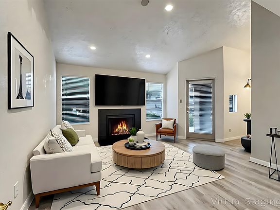Wood-burning fireplacePrivate balconyOpen floor planNew dishwasherGreat natural lightBrand new floors