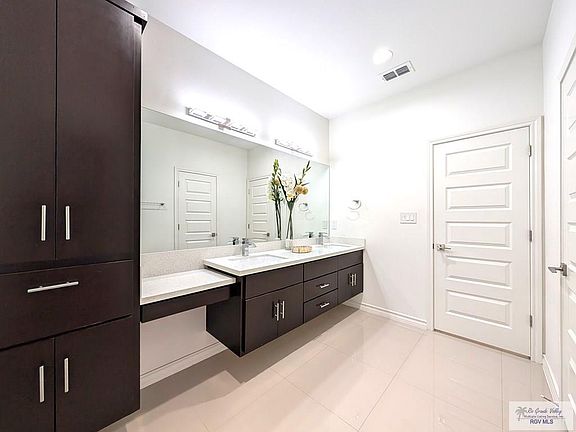 Split floor planTile flooringQuartz countertopsLarge fenced backyardDouble sinksPrimary suiteSpa-inspired bathroom
