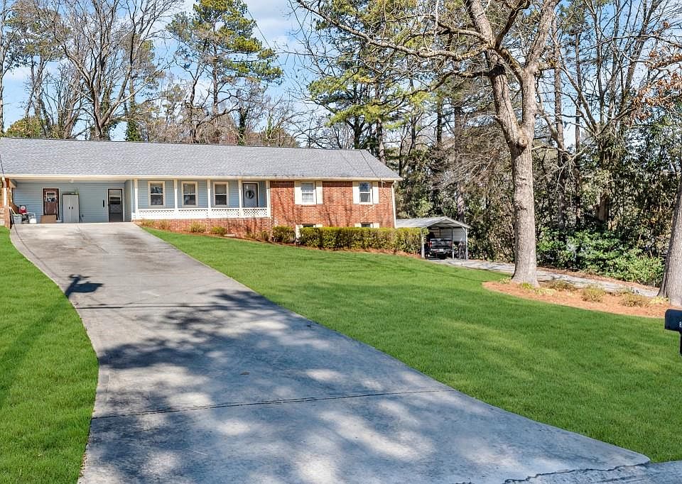Charming 4-Sided Brick Ranch with Modern Updates & In-Law Suite Potential Welcome home to this beautifully maintained 4-sided brick ranch, offering 4 bedrooms and 3 bathrooms, thoughtfully designed for comfort and style. Step inside to discover an updated kitchen featuring top-of-the-line appliances, perfect for anyone who loves to cook. The spacious living room provides a cozy retreat, The following items are staying: the TVs in the living room, downstairs, and on the porch; the Samsung Bespoke refrigerator, washer, dryer, and downstairs refrigerator; the cabinet in the carport; the kitchen table; the specially made tables that match the countertops; and four bar stools at the counter remain for the new owner's enjoyment. Enjoy outdoor living with a recently added covered back porch and an expansive back deck, ideal for relaxing or entertaining. The partially finished basement presents endless possibilities it includes one bedroom, one bathroom, and an additional entertainment room, making it perfect as a mother-in-law suite, guest space, or recreation area. Additional features include an extra driveway, a metal carport, and an exterior entry door, enhancing convenience and accessibility. A covered carport at the lower level provides further practicality. This property seamlessly blends classic brick construction with modern updates and thoughtful features. Schedule your showing today