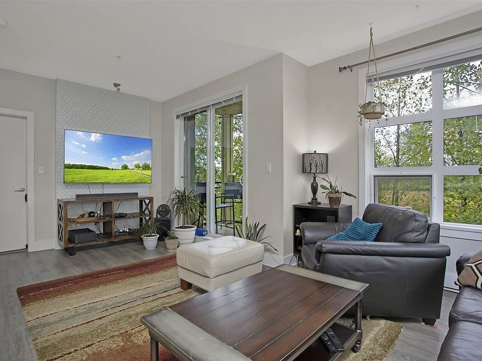 ELEMENTS 2 bedroom 2 bath Corner + End unit! Willoughby's best location. Steps to awesome shopping & restaurants in Langley. The spacious condo boasts a modern kitchen with lots of storage, stainless steel appliances, granite counter, upgraded laminate in the living, and oversized balcony overlooking treed green space.. The corner layout gives you privacy & extra wall of windows for abundance of natural light. The Elements boasts a massive clubhouse with 2 levels of lounge, party room, gym and much more. BONUS 2 secure underground parking stalls. Come and view this new listing today or tour the interactive virtual tour. Priced sharp.