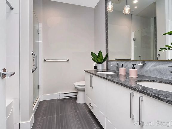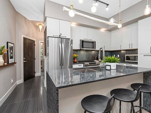 Welcome to Elements! Experience luxury in this penthouse unit, offering ultimate privacy with picturesque views of the greenbelt. The open-concept kitchen and living area features elegant quartz countertops with a waterfall island perfect for entertaining. The spacious master suite includes a walk-in closet and a spacious double sink ensuite. A large second bedroom with bathroom right beside it for added convenience. This condo also boasts a versatile den, two storage lockers, and two designated parking stalls. Enjoy the perfect blend of comfort and style in a serene setting. Don’t miss out on this incredible opportunity book your private showing.