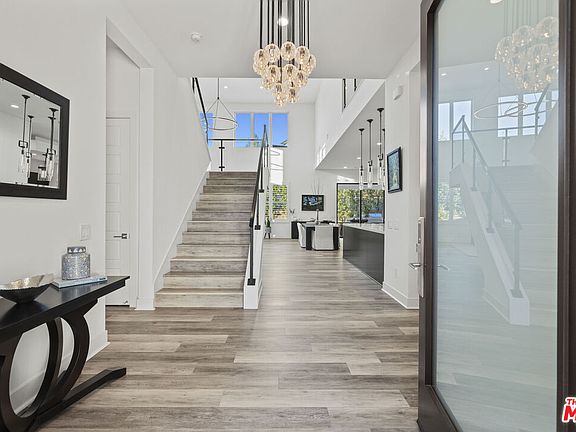 Stunning Ultra-Modern Estate in the exclusive 24-hour guard-gated community of Westcliffe in Porter Ranch Hills. Built in 2022 and situated on a coveted corner lot, this 5-bedroom, 6-bath estate with office, loft, and flex space showcases timeless upgrades, sleek design, and comes with custom designer lighting making it a true turnkey home.Upon entering through the majestic solid wood and glass front door, you're welcomed by soaring 24-foot ceilings and a bright, open floor plan that feels like a private oasis. Expansive windows and large stackable doors flood the Great Room and chef's kitchen with natural light, creating a seamless indoor-outdoor flow. The gourmet kitchen features designer appliances, a large stone island, quartz counters, and a full wet bar perfect for entertaining. The first level also offers a versatile office/media room, a flex space ideal for a gym, plus a guest bedroom and full bath.Upstairs, the luxurious Primary Suite serves as a retreat, complete with a spa-inspired bathroom featuring dual vanities, a rain shower, and spa-like soaking tub. Four additional bedrooms and a flexible loft complete the second floor. Designed for resort-style living, the entertainer's backyard is a true showpiece featuring a sparkling pool and spa, a dramatic water wall feature, fire pit, and a fully equipped outdoor kitchen with stainless-steel BBQ and a custom Taj Mahal stone island, perfect for serving cocktails or hosting al fresco dinners. Multiple lounging and dining areas, manicured landscaping, and a vegetable garden complete this private oasis.This estate is also equipped with a fully integrated smart home system and owned solar panels, combining modern luxury with energy efficiency. With a two-car garage, high-end finishes throughout, and the rare offering of a fully furnished turnkey lifestyle, this residence perfectly blends modern architecture with the best of California luxury living.Conveniently located near The Vineyards shopping center, Whole Foods, AMC, award-winning schools, and easy access to the 118 freeway, this is a rare opportunity to own one of Porter Ranch's most prestigious and breathtaking estates. Conveniently located near The Vineyards shopping center, Whole Foods, AMC, award-winning schools, and the 118 freeway, this is a rare opportunity to own one of Porter Ranch's most prestigious and breathtaking estates.
