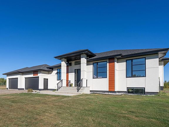FABULOUS 1652 sq. ft. FULLY DEVELOPED 3 yr old BUNGALOW, situated on 3.12, TREED, ROLLING & OPEN acres, east of Sherwood Park with busing to Strathcona County Schools! EXCEPTIONAL QUALITY in this STYLEBUILT HOME with attention to detail at every turn. From the gracious foyer to the SUNNY GREAT ROOM with hi ceilings, pot lights, FIREPLACE & LVP FLOORING! A generous dining room offers access to deck & yard & the MODERN WHITE KITCHEN features full height cabinets with glass inserts, BLACK STAINLESS APPLIANCES, BI MICROWAVE, QUARTZ COUNTERS, WI PANTRY & RICH BLACK & BRASS ACCENTS. Main floor LAUNDRY & access to the 42.5"x 22.11" HEATED QUAD GARAGE with extra storage! A spacious PRIMARY offers a SPA ENSUITE & WI CLOSET, there's 2 beds & a full bath that complete the main floor. The SUNLIT lower level offers a large FAMILY/GAMES ROOM, 2 BEDS, a full BATH, plus a DEN & BI WET BAR! An amazing DECK surrounds the 18'x33'x 48" deep HEATED & CHLORINATED ABOVE GROUND POOL! CENTRAL AIR, RECLAIMED ASPHALT DRIVE & MORE!