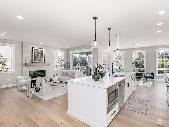 Own the model home at Altamura! Critchlow Home’s newest community of 46 homes near dtwn Bothell. Light-filled w/3,064sf, versatile 4-5 bdrm plan, 4 bths all w/showers + Lg Bonus/or 5th bdrm. Impressive details w/grand staircase & fine craftmanship. Beautiful kitchen boasts high-end cabinets w/glass, accent lights, commercial style appl + 11ft island! Indulgent Primary Ensuite w/2 walk-in closets. Private fully fenced backyard borders private & quiet green space. Covered deck w/sunset views! A/C, 6yr wrnty & low HOA dues! $5,000 Buyer Bonus for limited time! Convenient shops/services across the street + near popular dining, bike trails & parks! Quick fwy access & back roads to Seattle & Eastside. Site Reg. Policy. Northshore School Dist!