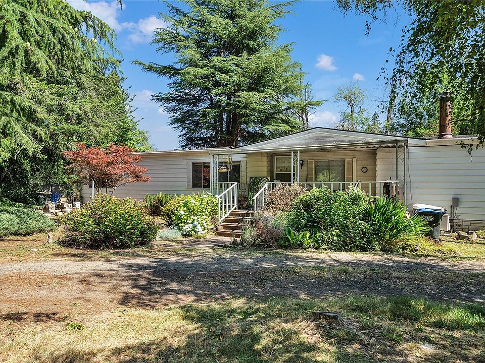 Quiet retreat from the hustle and bustle, on a dead end street. Nearly ¾ acres surrounded by natural buffers, tucked away in the gorgeous Skookumchuck valley. Newer roof and newer split duck heating and AC, the home is structurally in good condition, comfortable & livable, but could use updates & your own personal touch. Yard is large & peaceful, abundant with fruit trees. Detached shop is sound & dry with a concrete floor. Property abuts a large resource (Skookumchuck maintenance area) considered community property for a few residents and is more or less traversable to the Skookumchuck river over a foot bridge. Buyer to verify, trails may need to be re-blazed. Home and yard have no flood history, but home is in flood plain.