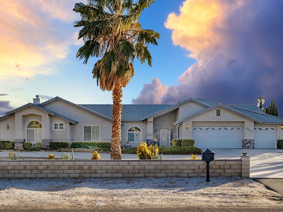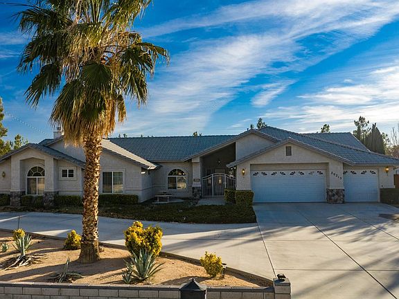 ***CUSTOM APPLE VALLEY HOME***This is a must see gorgeous home with full front landscaping, private wrought iron secured entry and circular drive. This home is open and spacious with wide hallways and two step in custom tile showers for easy access. Home boasts a formal living room plus a formal dining room with built in cabinetry, granite accented kitchen with a breakfast bar for extra seating open to a family room with a cozy fireplace. There is also a large dining nook. This split floor plan provides privacy for the master bedroom suite complete with fireplace and beautiful master bath with dual sink counters plus separate shower and bath. Other side of home has three bedrooms accommodated with a full bath plus a half bath all adorned with custom tile. There is a large covered patio with a beautifully treed back yard ready for outdoor event. There is room for RV parking a an attached three car garage as well. Located in Sunset Hills, one of Apple Valley's finest neighborhoods. Schedule your private showing today and bring in the New Year in your new home.