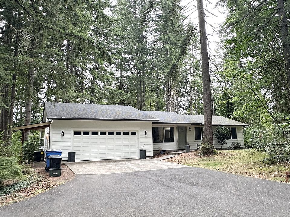Remodeled Ranch in Brush Prairie! 1,150 sq ft shop, RV parking. This private 2.52 acres is a true experience. It is a very secluded property, located in a quaint neighborhood; Open Floor Plan with Beautiful finishes Throughout! Totally updated in 2023, new siding, windows, flooring, new kitchen cabinets, quartz counter tops, pantry & island, Vaulted living room w/pellet stove, 2 full bathrooms w/tile floors and quartz counter tops, new heat pump, covered patio & deck for entertainment, playground, tool shed, space for animals, this is a Private Oasis! 7 minutes to shopping & 30 minutes to PDX! Located in the Desirable Brush Prairie area with good schools!