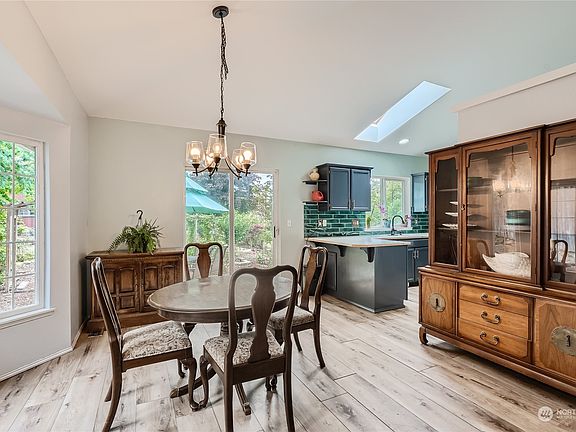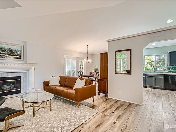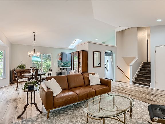 Great tri-level home on a spacious lot. New roof and gutters. Fresh interior and exterior paint. Updated flooring throughout. Living room has a comfortable gas fireplace and vaulted ceilings. Kitchen has stainless steel appliances and a walk-in pantry. Primary bedroom upstairs with walk-in closet and an ensuite bathroom with double sinks. Two more bedrooms and a full bathroom upstairs. Lower level has a family room with lots of built-ins. Two large patios, great for entertaining. A gardener's dream in the backyard with garden beds, fruit trees, drip irrigation, trellises, and peaceful ponds. Flexible outbuilding with power and shelving. Enjoy mountain views from the backyard on clear days.