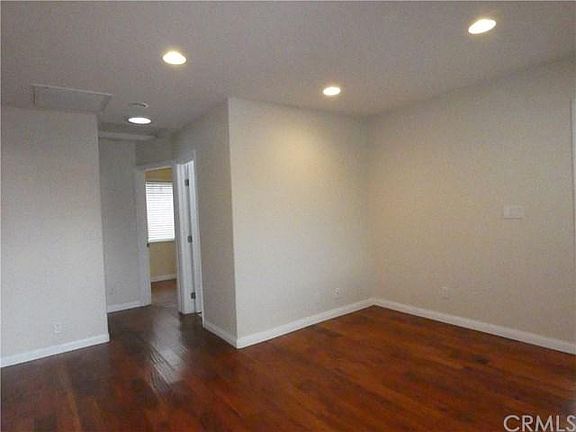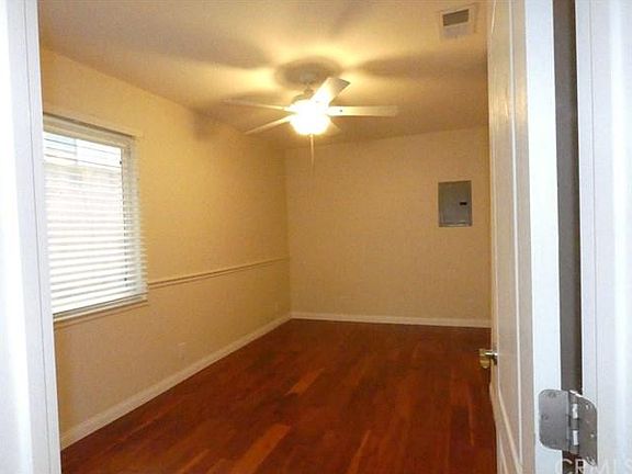 Move in ready, built in 2012 completely detached private home with large backyard. Two Bedrooms + large Den could be the Third bedroom. Freshly painted interior and exterior. This is a Private back house with single car garage and long driveway can accommodate 2 to 3 extra cars or for RV parking. This house was completely re-built in 2012 with new engineered wood floors, a new kitchen with granite counters, a laundry room, full bath with tile floors. Ceiling fans, in all bedrooms, forced heating unit, Front porch. Gated entry. Private yard with a large grassy backyard.